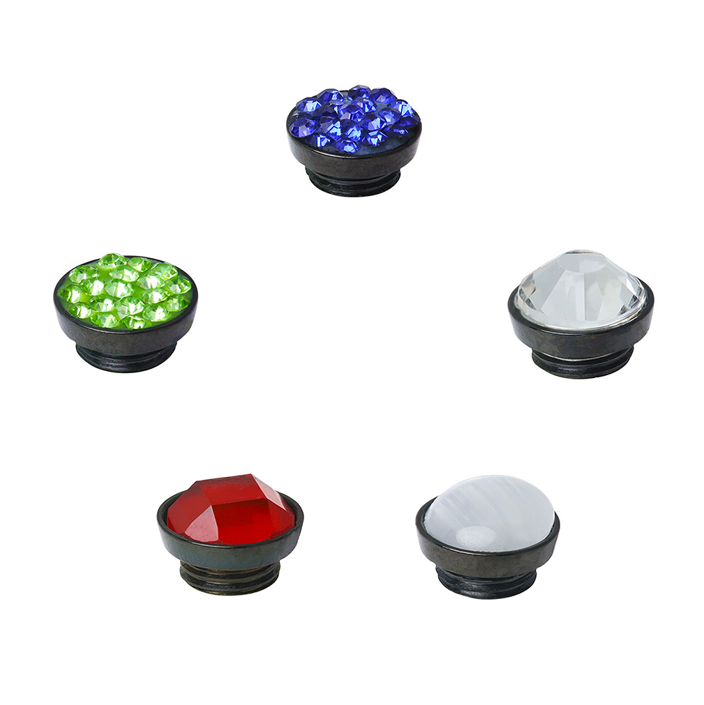 De zwarte basisstenen kunnen gecombineerd worden met de zwarte interchageable stenen ringen of kettingen.