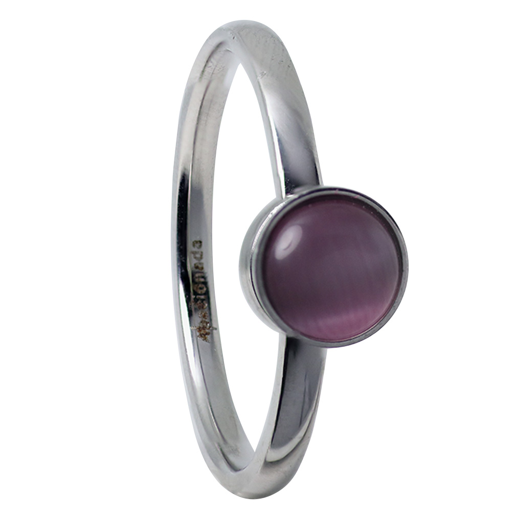 Zilverkleurige ring met een verwisselbare steen. Er zijn verschillende stenen verkrijgbaar in verschillende kleuren.