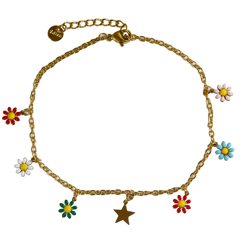 Gold Color Anklet With A Star in the middle and 6 Daisies