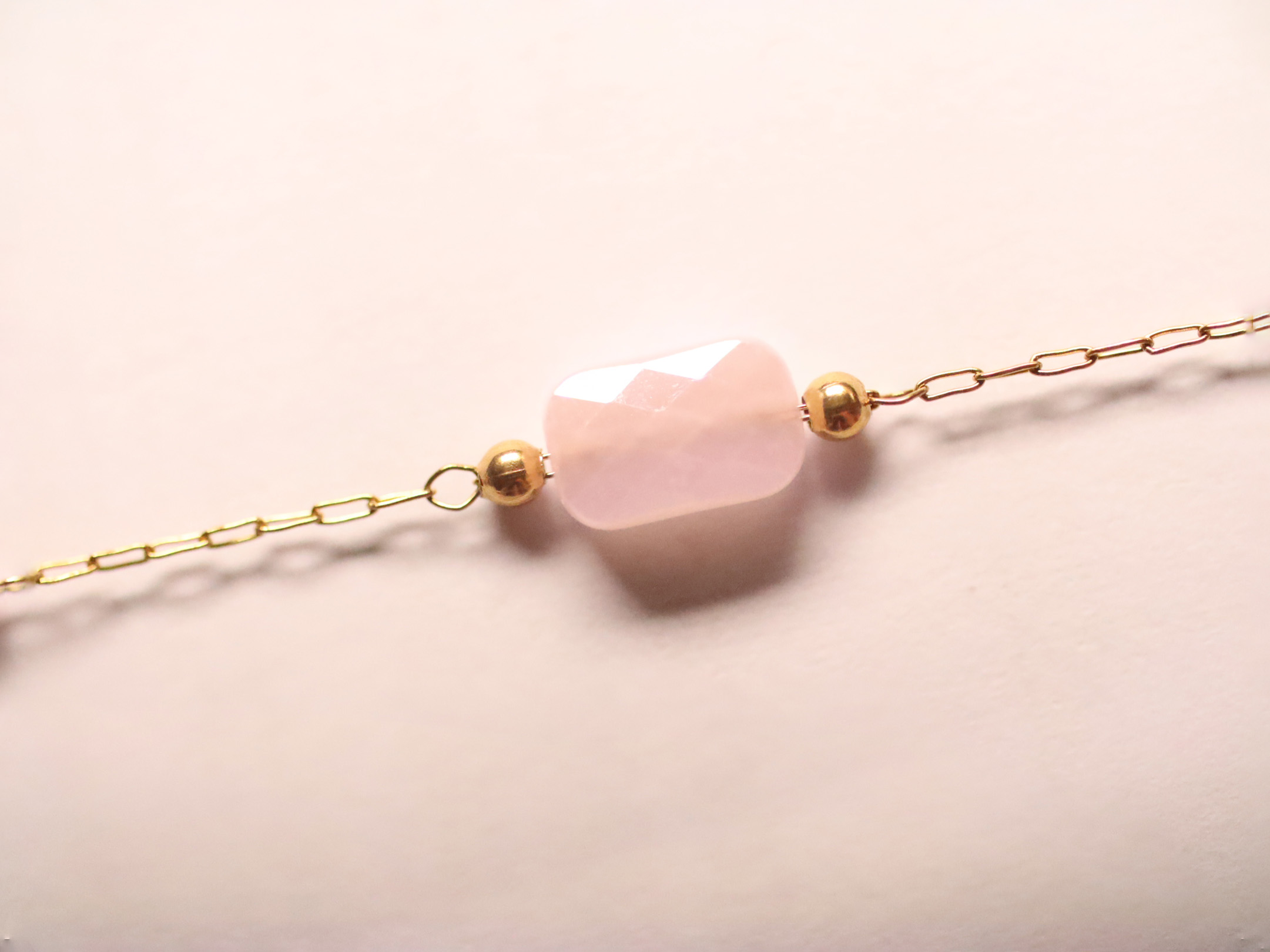 Gold Color Bracelet With Natural Pink Quartz Stones
