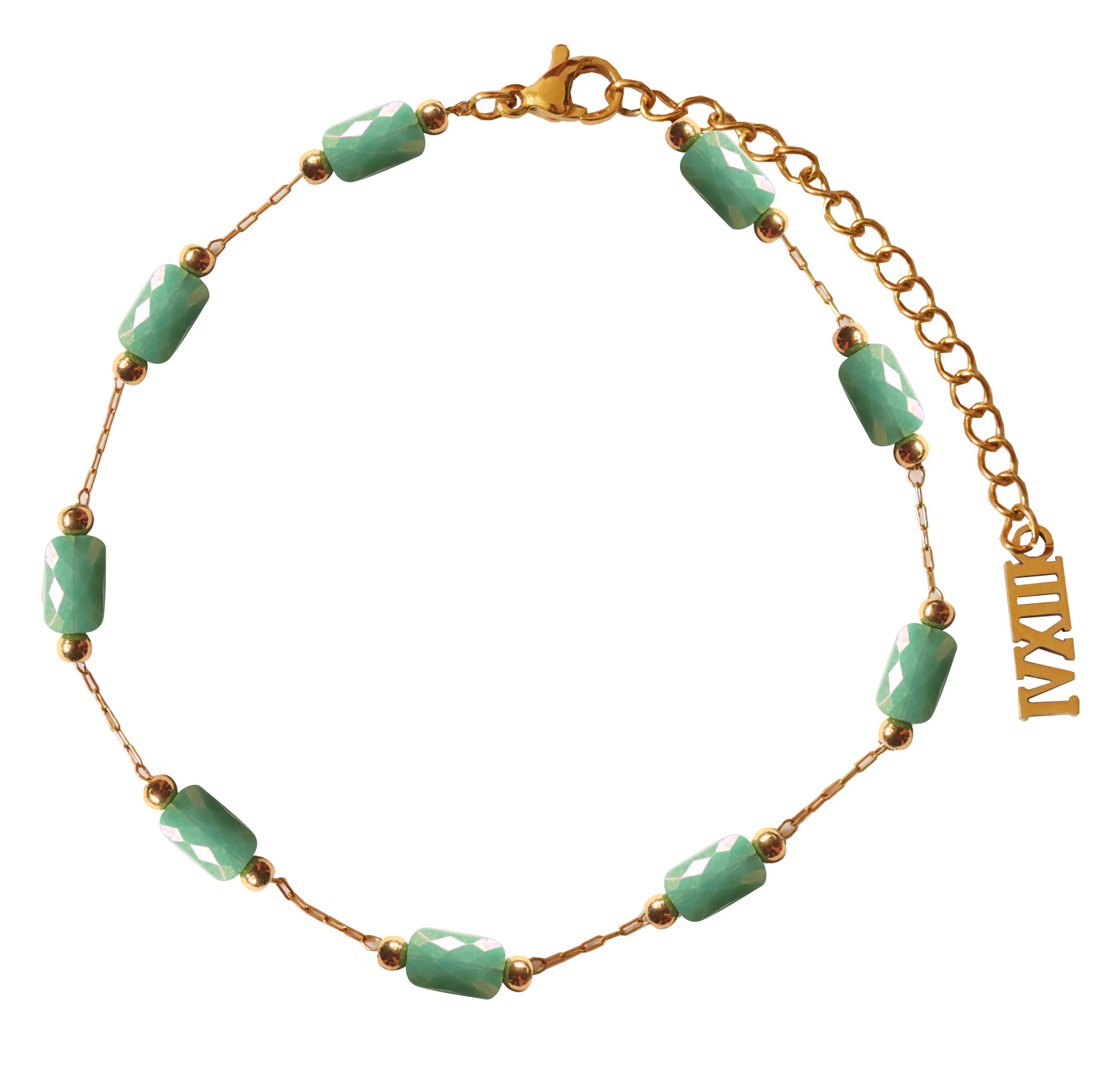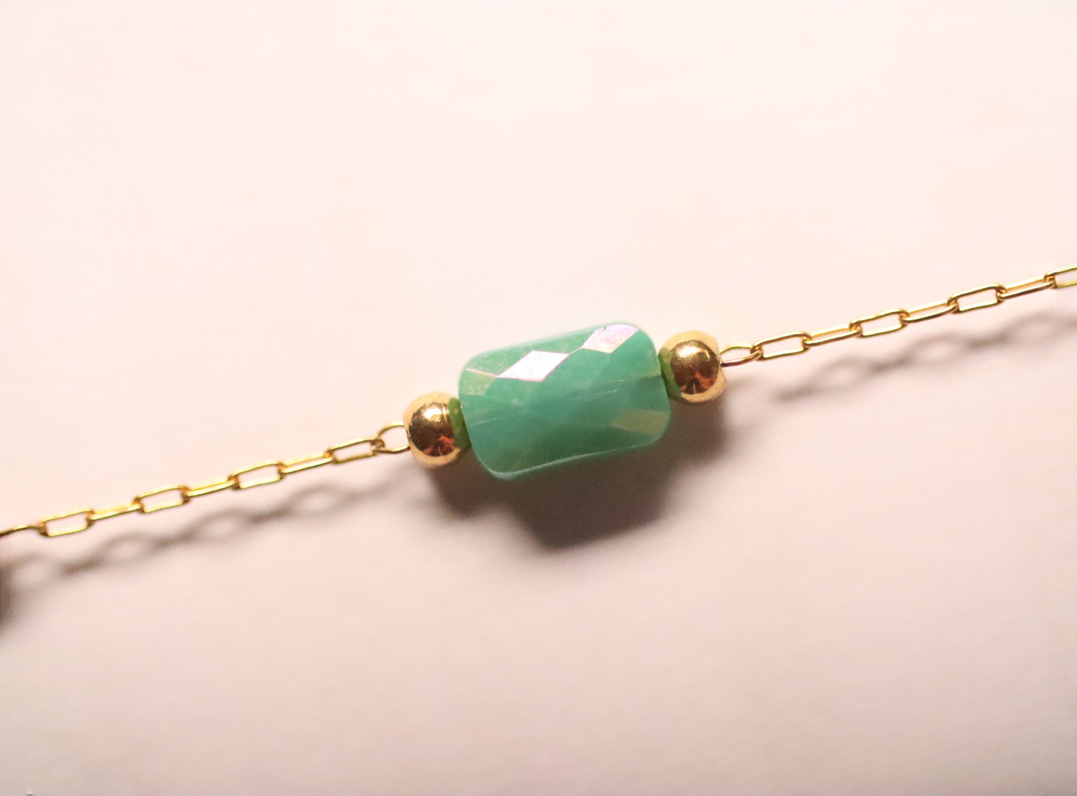 Gold Color Bracelet With Green Quartz Stones