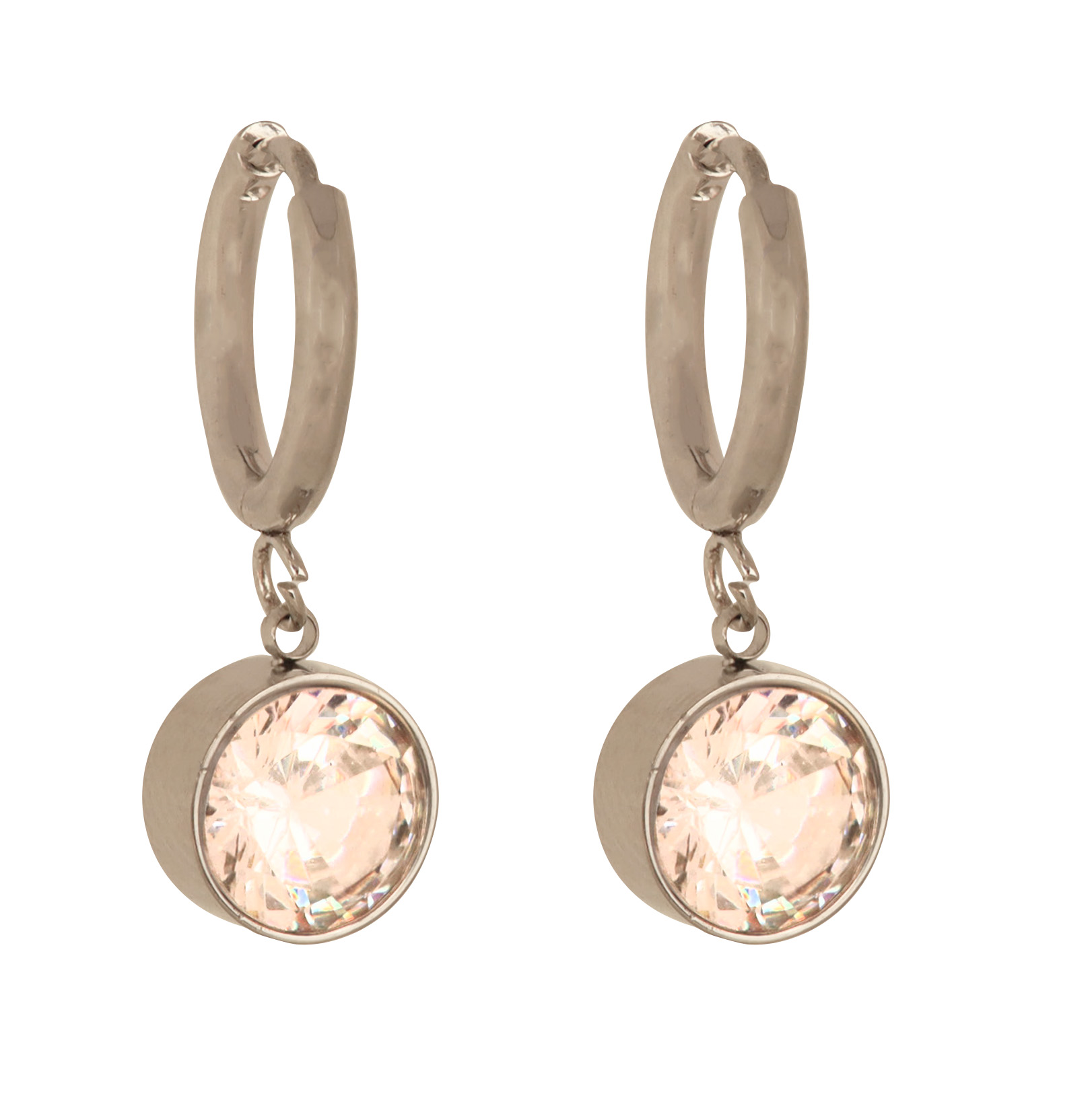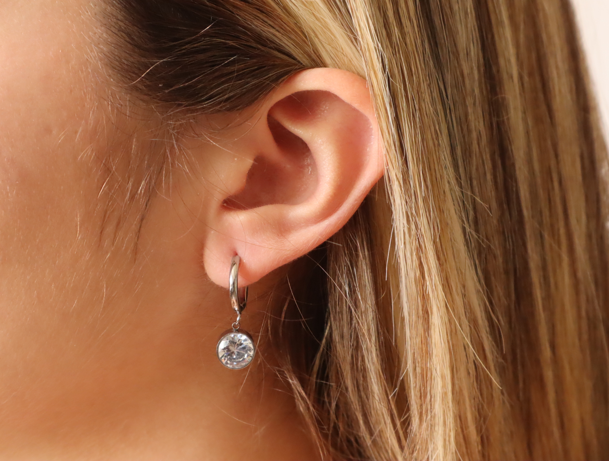 Round Shaped Earrings with a big Clear Zirconia Stone