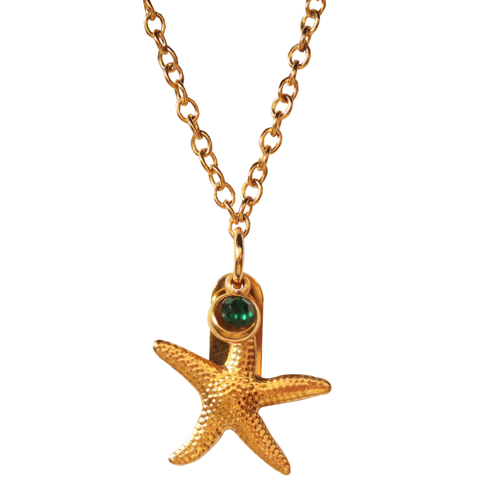 Gold Color Necklace With a Sea Star With a Little Green Zirconia Stone