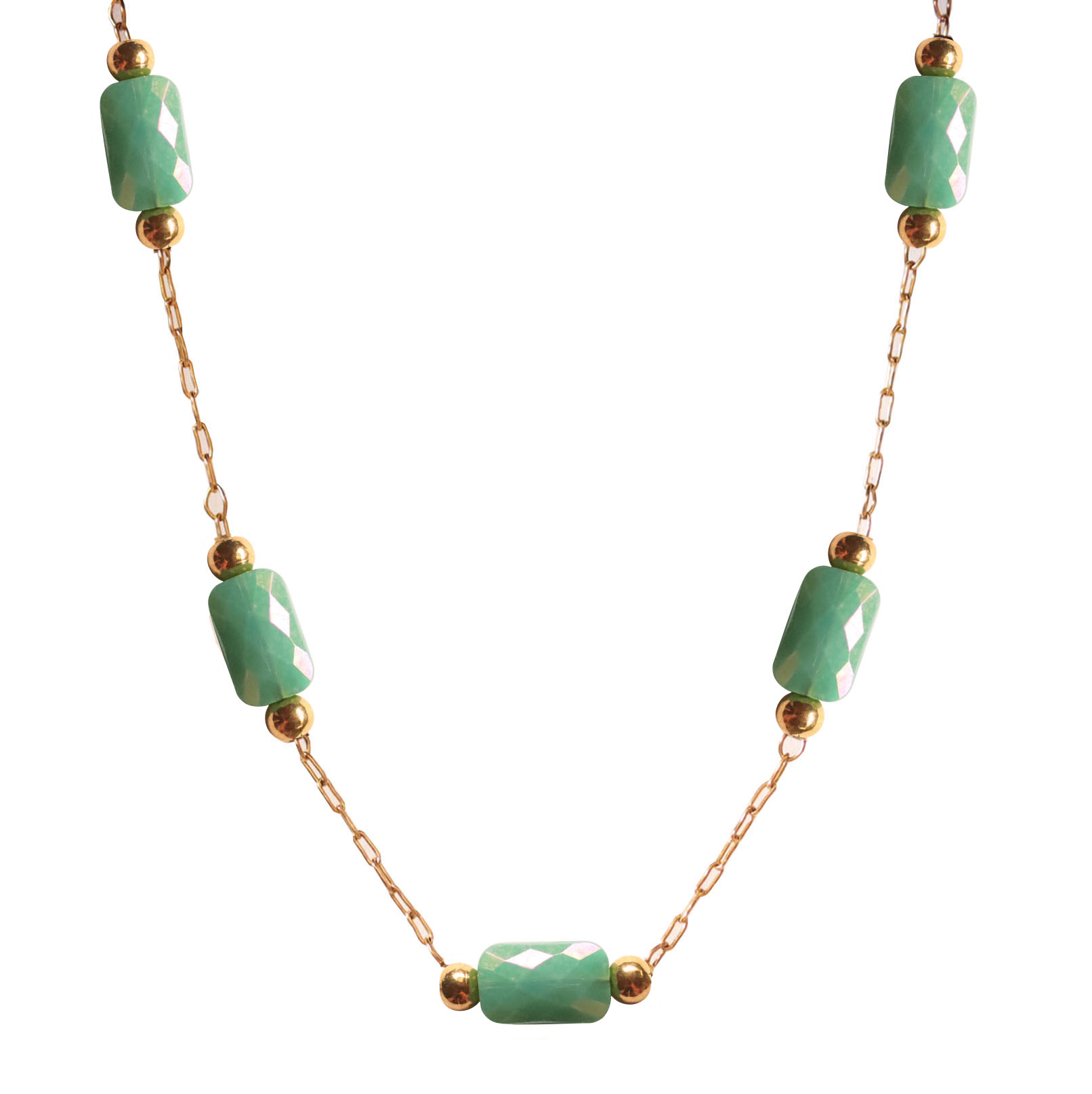 Gold Color Necklace With Natural Green Stones